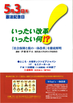 | よびかけ | 政府は、今年2月17日、「社会保障・税一体改革大綱」を閣議決定しました。 私たちは、このなかで打ち出された「子ども子育て新システム」「障害者自立支援法」「介護保険」の見直しなど、これまで「権利」として位置づけられ、国の責任で実施してきた社会保障制度が、大きく変わろうとしていることに強い危惧を覚えます。 また、消費税の引き上げは、所得の多い少ないに関わらず、一律に負担することになり、一見公平で平等に「助け合い、支え合う」ことのように見えます。しかし、実は消費税には、大きなカラクリがあります。 私たちは、東日本大震災や原発事故を経験し、「助け合い・支え合う」社会の大切さを感じています。しかし、政府のいう「社会保障・税一体改革」は、国民感情を利用し、国や自治体の公的責任を投げ出し、市場化のなかに子どもやお年寄りを巻き込むものです。 ぜひ、5月3日憲法記念日は、憲法第25条の保障する「人としての生きる権利」について考えていきましょう。 |